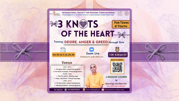 In this Online Course of 18 sessions, Gauranga Darshan Das presents the pristine flow of Sri Bhagavad Gita in a simplified and concise form. In this condensed overview, children will become familiar with the essence of this great scripture, interconnections between the chapters and practical application perspectives